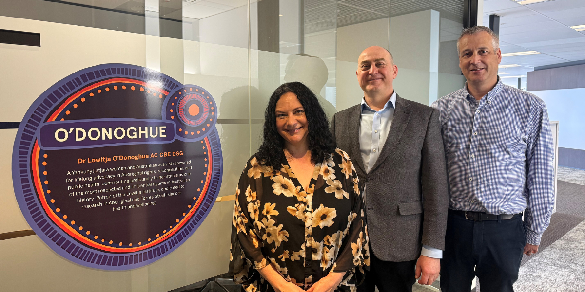 During her visit, Deb spent time in the newly named O’Donoghue Room with our CEO Stuart Mitchell and Reconciliation Action Plan Working Group member Colin McNeil, reflecting on Dr O’Donoghue’s legacy. Deb reflected on the visit:
